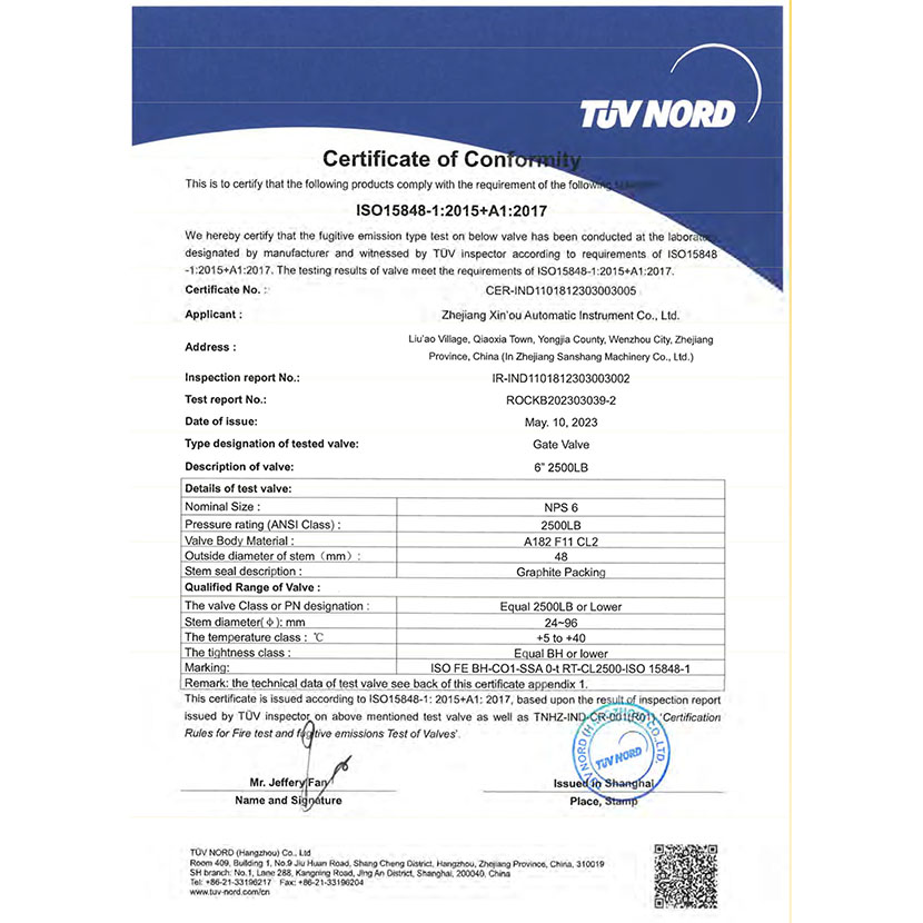 閘閥 微泄露證書 1