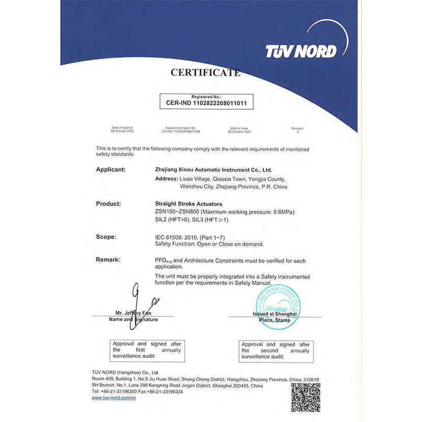 直行程執行器 SIL證書 1