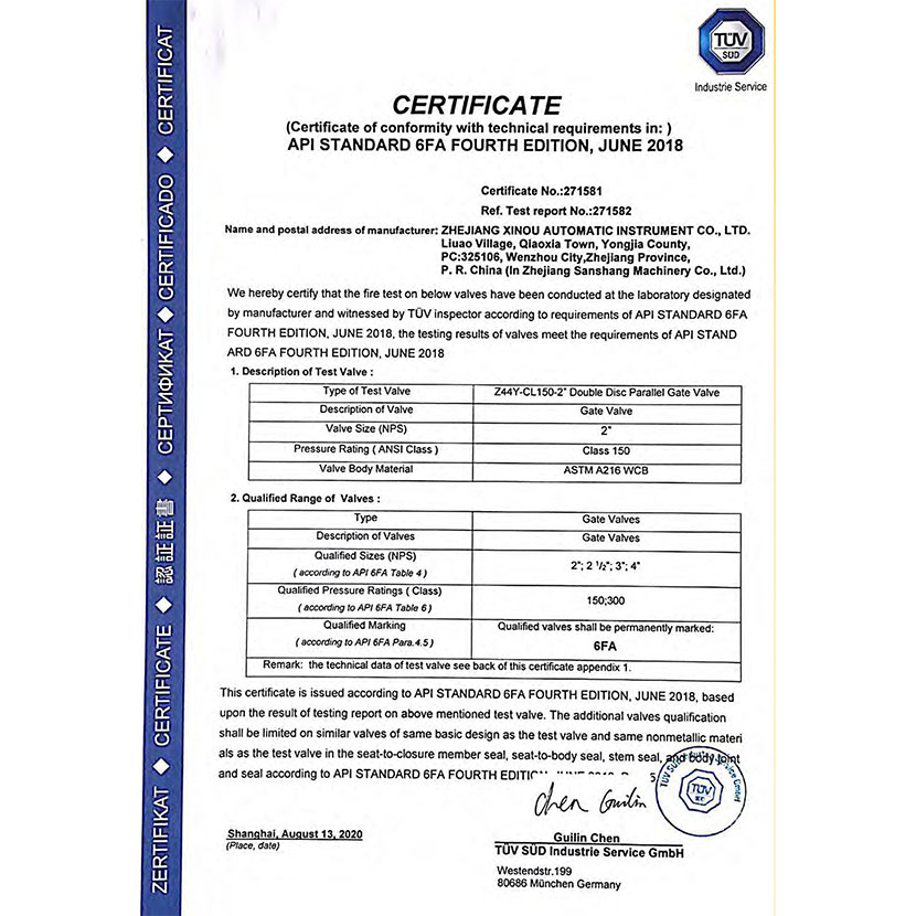閘閥防火證書 6